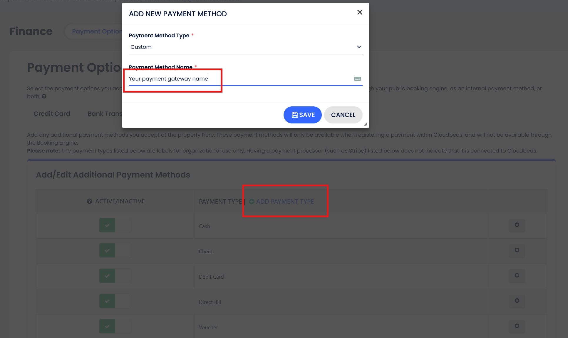 6. “ADD PAYMENT TYPE” then enter your payment gateway name.