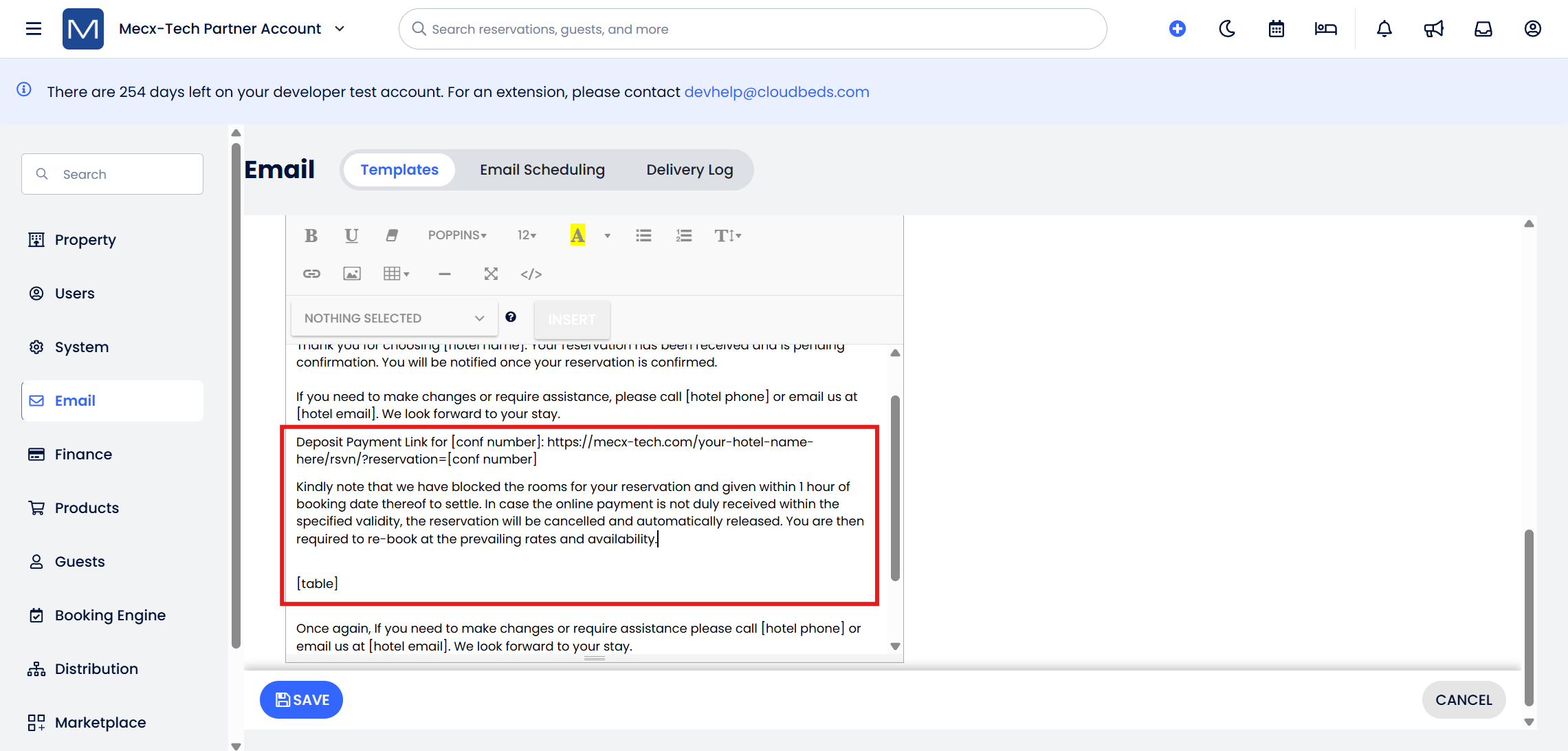 9. Setup “Email Template”: Edit “Pending Confirmation” email template to include the payment link.